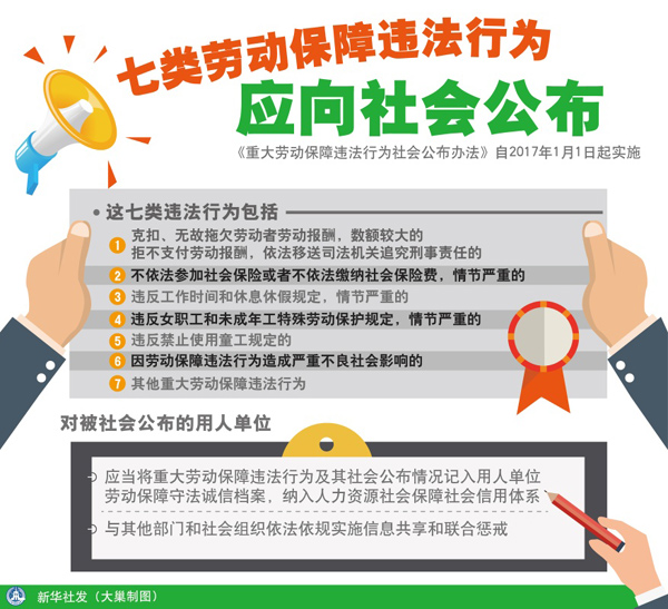 《重大劳动保障违法行为社会公布办法》已经2016年8月1日人力资源社会保障部第104次部务会讨论通过,现予公布,自2017年1月1日起施行。